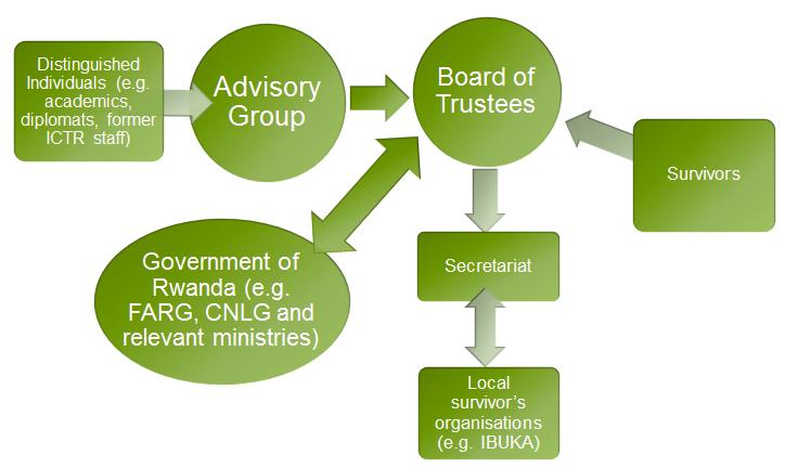 The Board of Trustees will be supported by an Advisory Group composed of distinguished individuals with a specific interest and expertise in Rwanda, including academics, diplomats, ICTR judges. Members of the Advisory Group will serve as ambassadors of the Fund to help raise awareness of its work, secure funding for it and provide guidance to the Board of Trustees as required.